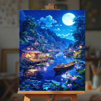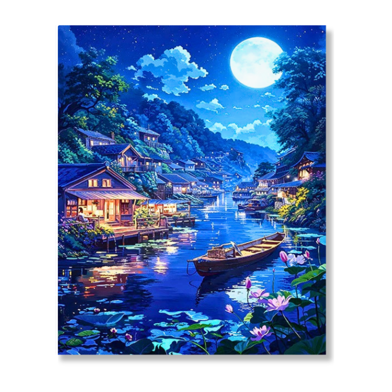 Drift away to a place where the water is always calm and the village lights always glow. "Dreamer's Dock" isn't just a painting; it’s a portal to peace. With every brushstroke, you’ll bring this enchanting midnight sanctuary to life—capturing the shimmering reflections, the delicate lotus blooms, and the silent wooden boat waiting just for you. Perfect for quiet evenings, this kit turns your stress into a stunning masterpiece. Paint the calm you deserve.