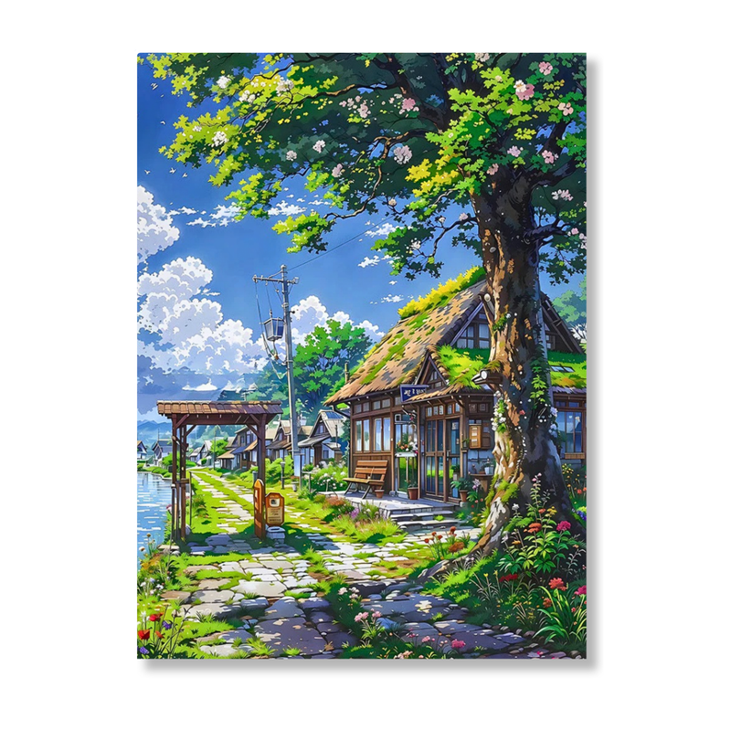 Body: Step into a scene of pure tranquility with "Komorebi." This vibrant Paint-By-Number kit transports you to a quiet countryside retreat, complete with a cozy moss-roofed cottage and fluffy summer clouds drifting through an azure sky. As you paint the dappled sunlight dancing on the stone path, you’ll feel the stress of the day melt away. It’s more than just a painting; it’s a nostalgic escape to a place where time stands still.